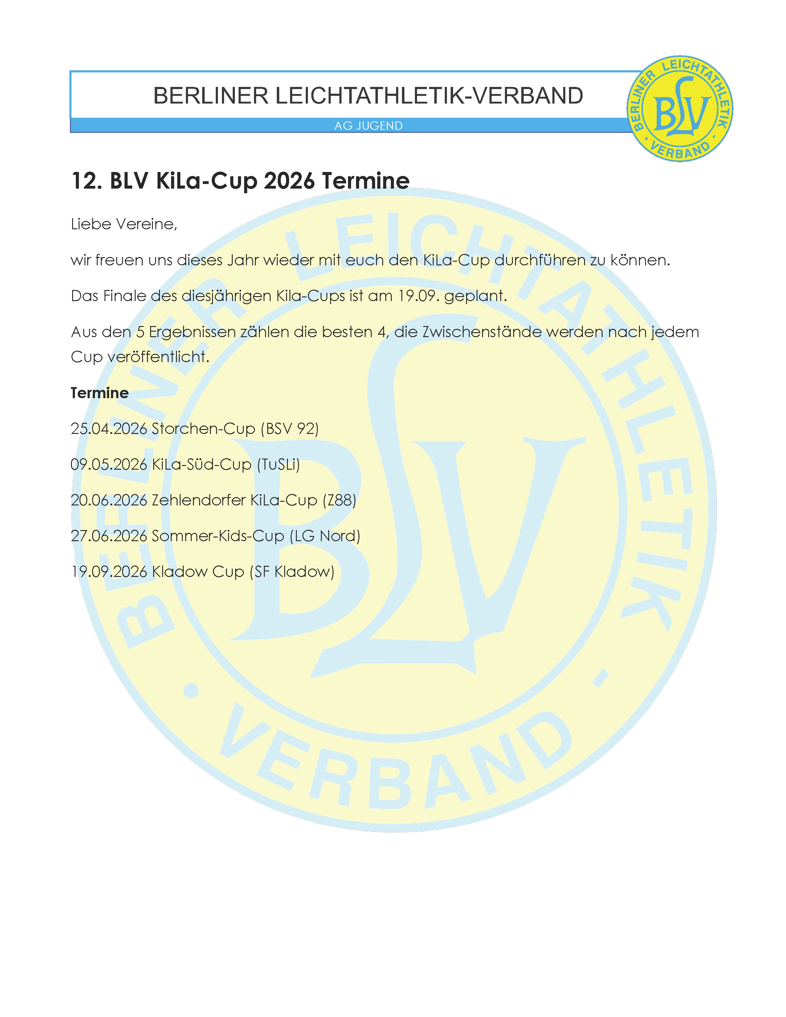 Der BLV richtet mit seinen engagierten Vereinen jedes Jahr einen Kinderleichtathletik-Cup aus. Die einzelnen Stationen sind über das ganze Stadtgebiet verteilt.