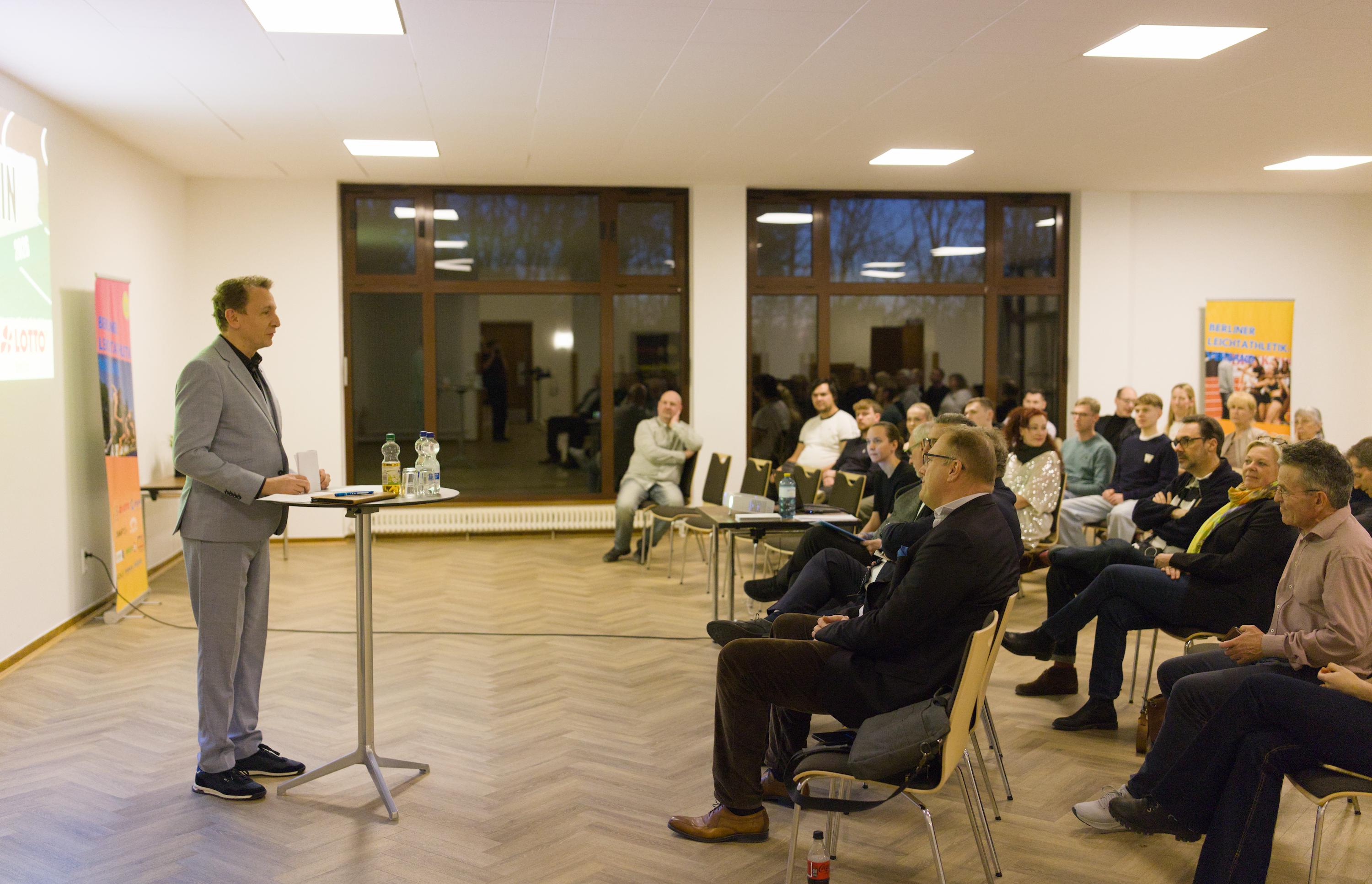 Durch den Abend führte erneut Moderator Marco Seiffert. Grußworte von BLV-Präsident Andreas Statzkowski sowie von Karsten Finger eröffneten das Programm. Beide hoben die große Bedeutung der gezielten Förderung für Berliner Leichtathletinnen und Leichtathleten hervor und würdigten das Engagement der Partner.